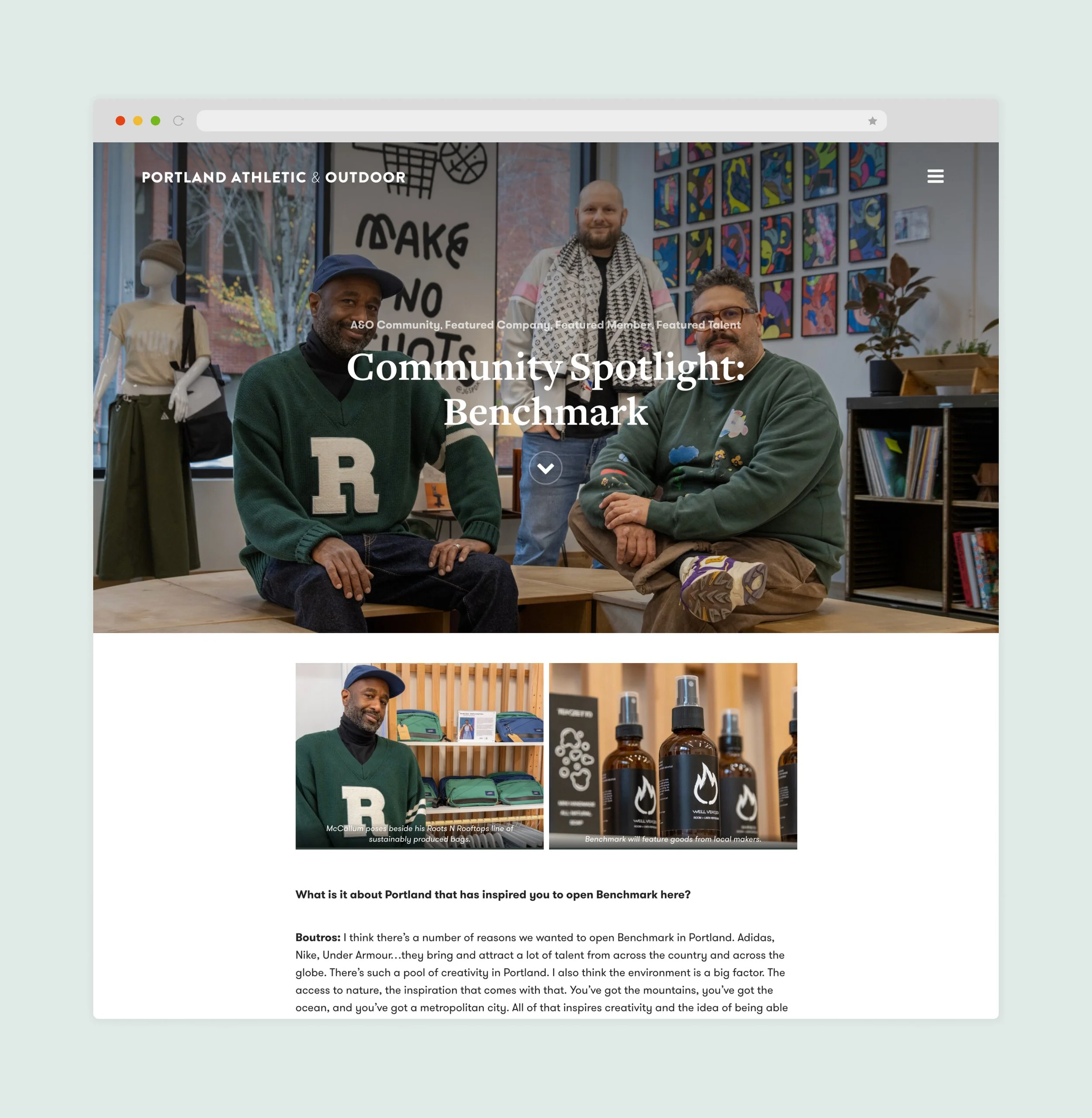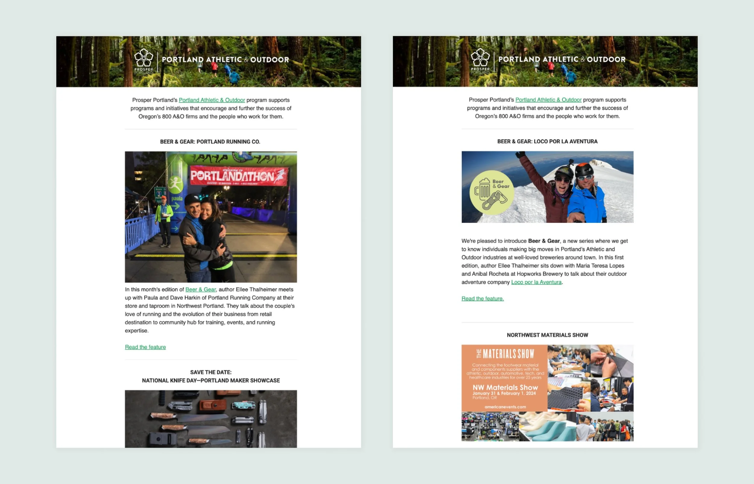 Since 2023, Sheepscot has assisted Athletic & Outdoor Portland (a division of Prosper Portland) with communication strategy and asset development. Using the photography and interviews from our local business profiles, we publish full-length interviews on the A&O website. A monthly newsletter keeps subscribers up-to-date with the latest news and opportunities within the industry (and, of course, features excerpts from the our interviews.)