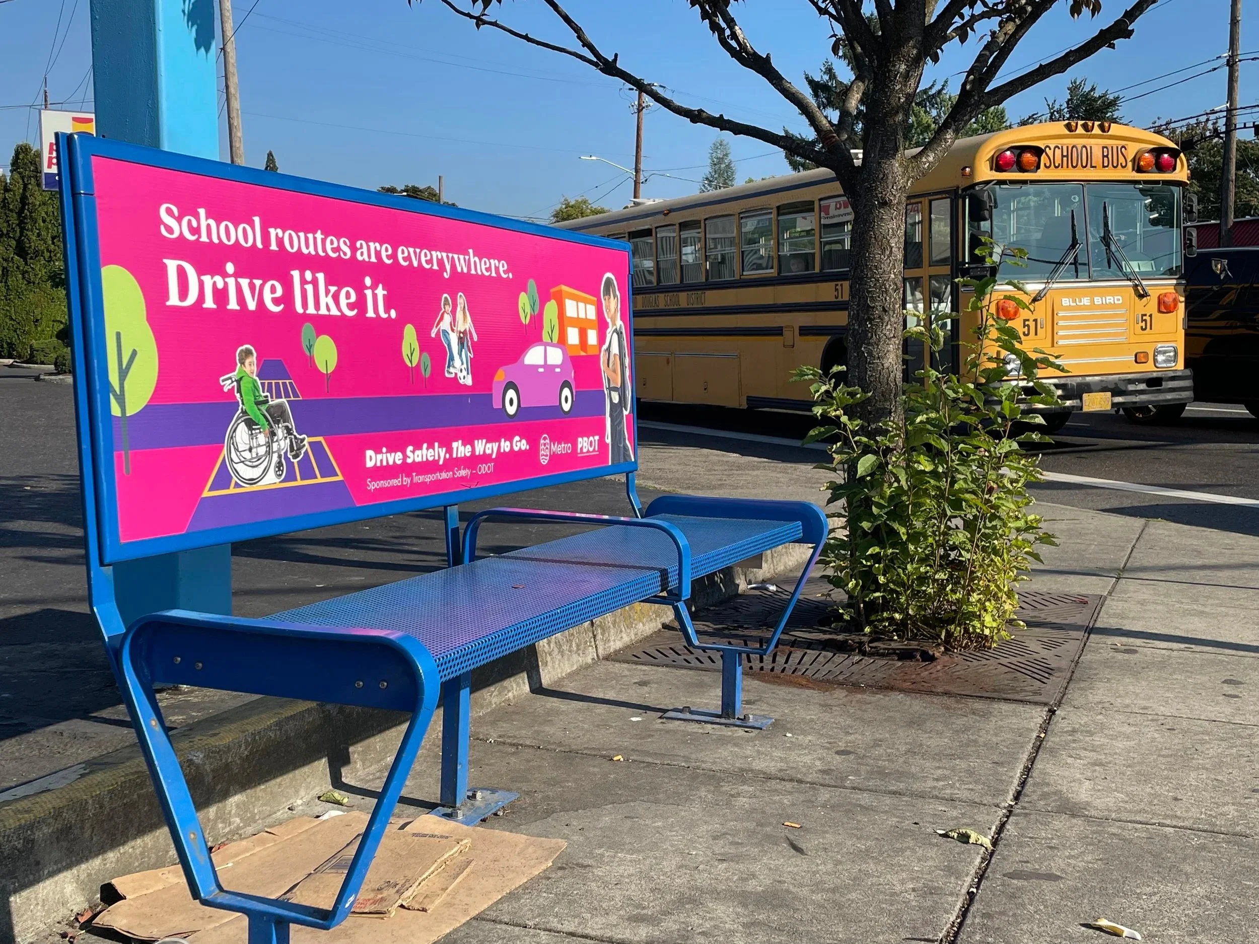 Strategic ad placements on TriMet bus backs and benches allowed Portland Bureau of Transportation to get their school zone safe driving campaign in front of drivers in key, high traffic areas.
