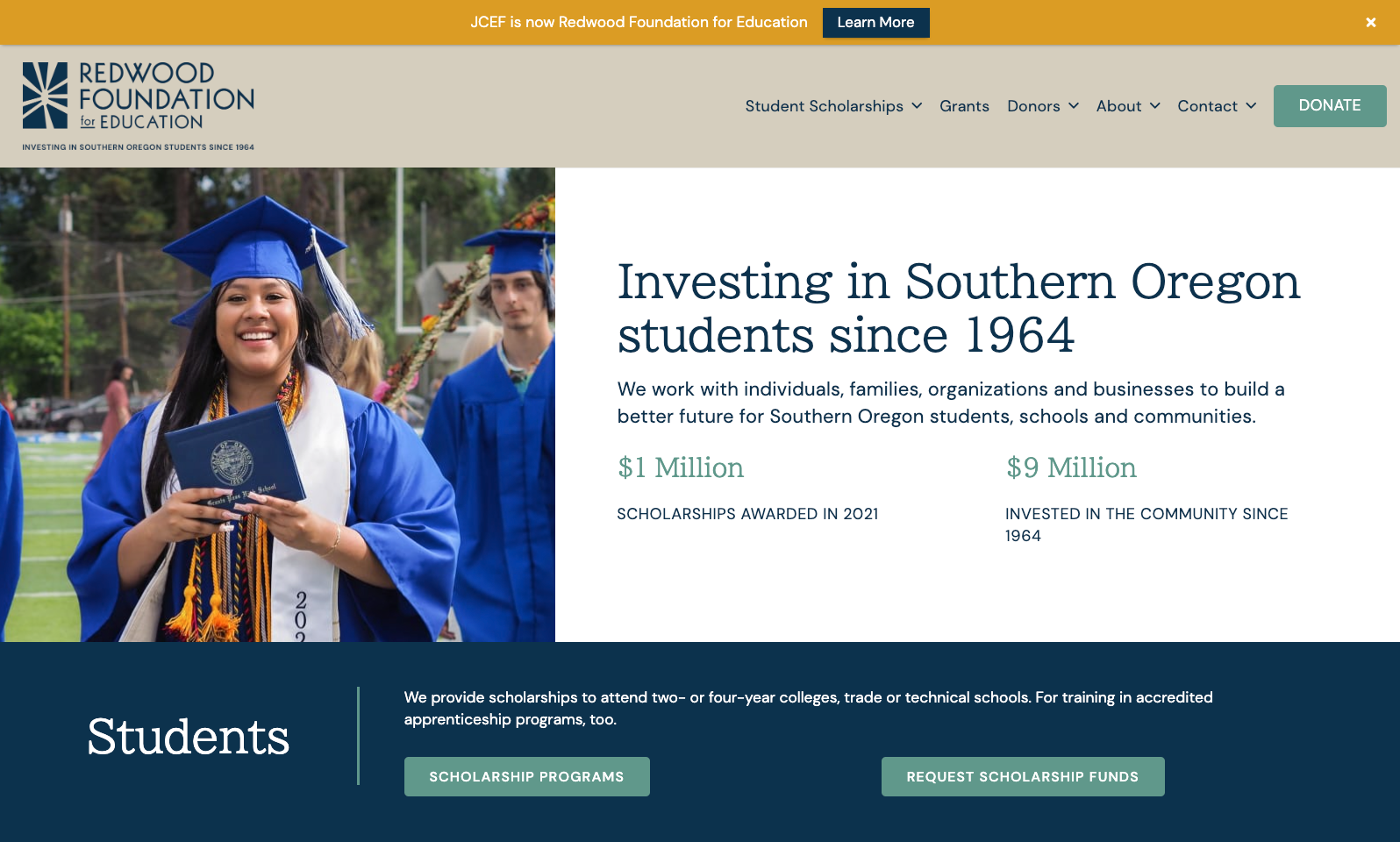With a new name and brand, the Redwood Foundation for Education’s website needed an overhaul. We worked within the existing web framework to improve usability, clarify messaging, and update the logo, colors, fonts, and styles.